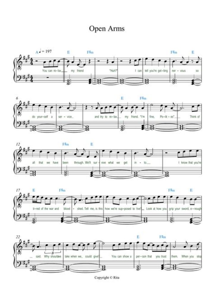 "Open Arms" is not just a song; it is a heartfelt invitation to love and acceptance. The iconic ballad, originally performed by Journey, captures the essence of longing and the warmth that comes from being embraced by someone special. As the lyrics unfold, they tell a story of vulnerability and the hope of rekindling a relationship. This article will explore the meaning behind "Open Arms" with lyrics, diving into its themes, the artist's journey, and the impact it has had on listeners worldwide.